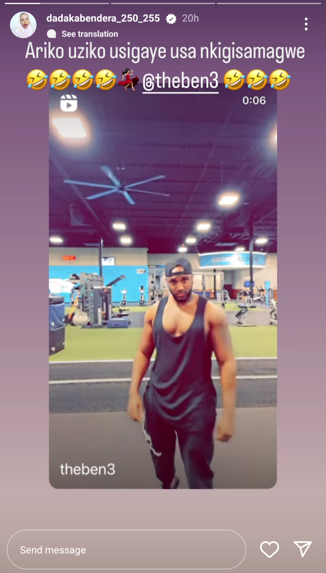 Abinyujije kurukuta rwe rwa Instagram yashyizeho amashusho ya The Ben ari mu myitozo ngorora mubiri maze yandikaho ngo “Uziko usigaye usa nk’igisamagwe”