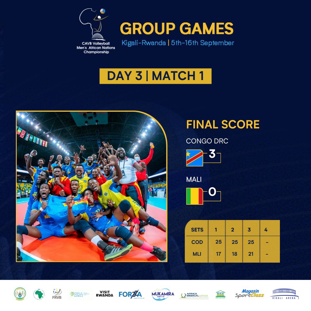 Ku munsi w’ejo nibwo habaye umukino wa Volleyball wahuje ikipe ya DRC n’ikipe ya Mali. Ni umukino warangiye ku ntsinzi y’ikipe ya DRC ku ma seti 3 ku busa bw’ikipe ya Mali.