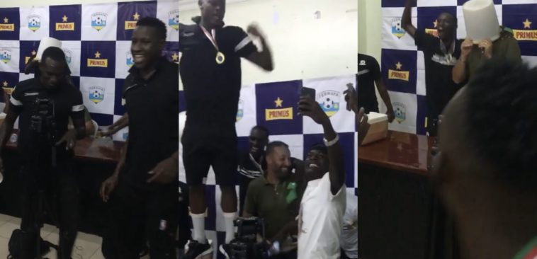 Nyuma y’umukino, abakinnyi b’ikipe ya APR FC batunguye umutoza Adil maze bishimana nawe aho barimo babyina, bamumenaho amazi ndetse bamwe bakananyuzamo bakamupfukisha indobo mu maso mu rwego rwo kumushimira.