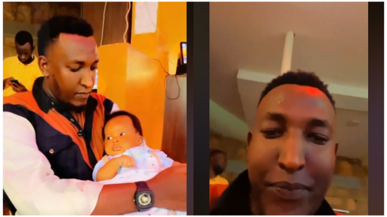 Umusobanuzi w’ama filime Junior Giti yagaragaye ateruye umwana we aherutse kwibaruka ndetse yishimanye n’umuryango we maze ashimagiza abaseribateri.