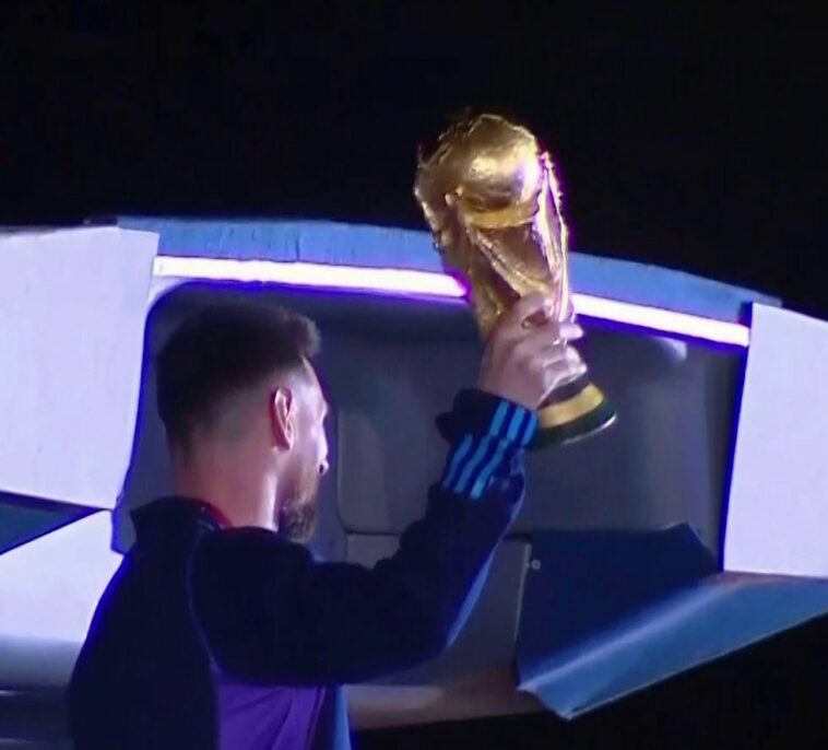 Messi na bagenzi be bari bahimbawe cyane kubera ibyishimo bagaragarijwe n’abafana babo,bari bagiye gutegwa n’uru rutsinga rw’amashanyarazi ubwo bari mu mujyi wa Buenos Aires.