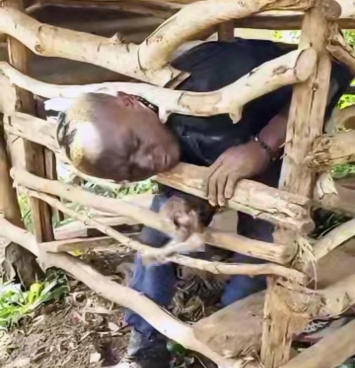 VIDEO : Umugabo yubatse ikirara k’ibiti yifungirana mo mutwe wanga kuvamo
