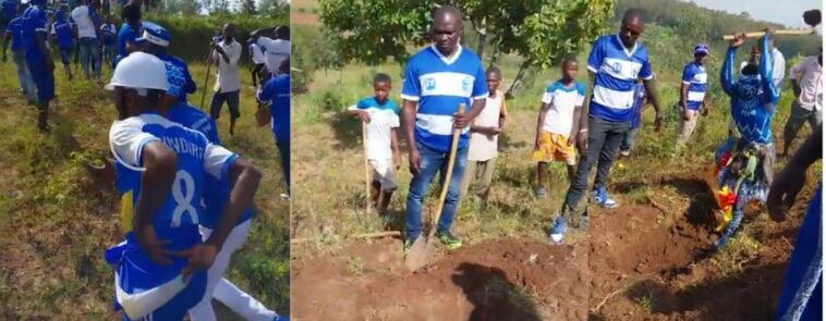 Abo bafana ba Rayon sport bitabiriye umuganda baje ari benshi bagaragaje imbaraga z’ubwitange mu mwambaro ubagaragaza nk’ikipe yabo.