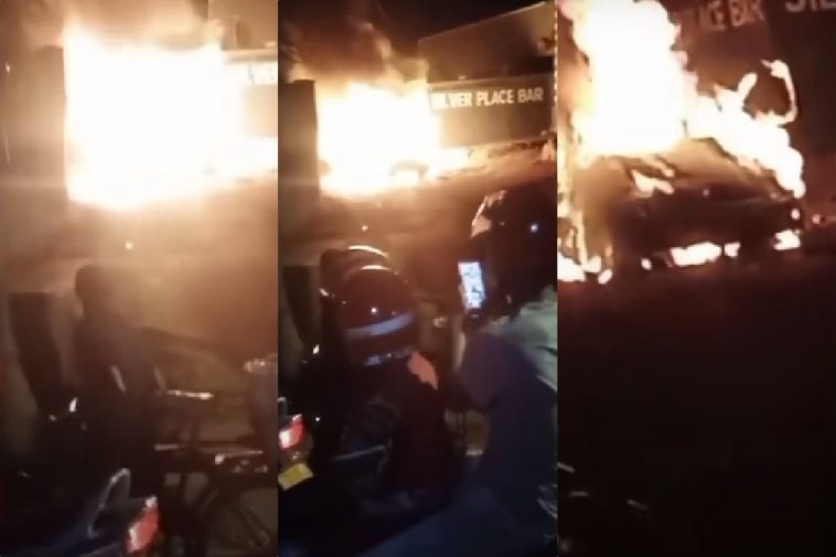 VIDEWO: Imodoka yafashwe n’inkongi y’umuriro irashya irakongoka Abamotari bavuze induru