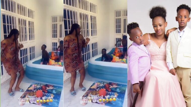 Anita Pendo yasokanye abahungu be babiri maze bararyoshya bigera aho baza no kubyinana indirimbo igezweho y’umuhanzi Diamond Platinimz.