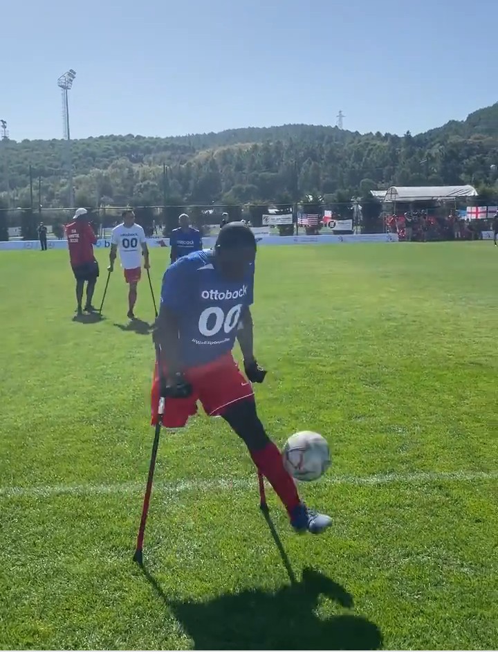 Ku mbuga nkoranyambaga hakwirakwiye umugabo ufite ubumuga bw’ingingo ukina umupira ukagirango afite amaguru yombi, kubireba birashimishije cyane.
