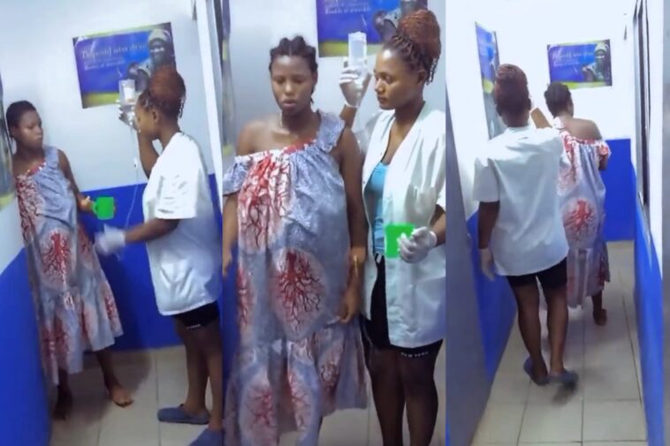 Mu mashusho yakwirakwiye agaragaza umugore uri hafi kubyara yabuze amaho kwicara byamunaniye no guhagarara hamwe byanze.