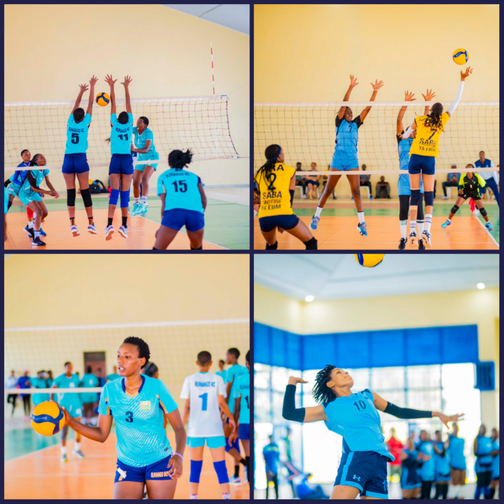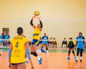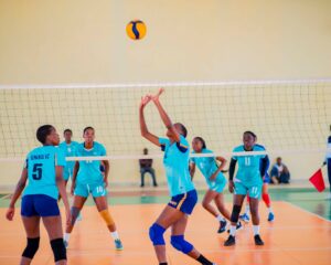 Amafoto y’abakinnyi ba Ruhango VC na IPRC VC bari gukina.