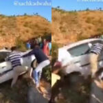 Imodoka yakoze impanuka abantu barayegura, shoferi akimara kubona imodoka igeze ku butaka ahita yiruka adahembye abayeguye, igeze imbere ihita yongera irahirima – videwo