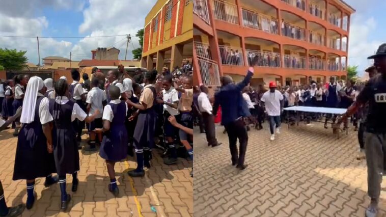 Umuhanzi ugezweho muri Uganda, Alien Skin yagiye gufata umukobwa we ku ishuri kugira ngo bajye gusangira ibya saa sita gusa abanyeshuri b’ikigo bose bahise bamwuzuraho.