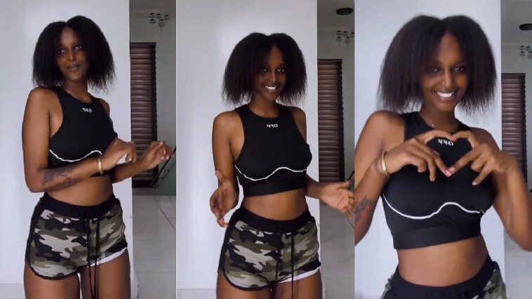 Ni amashusho yasangije abamukurikira ku mbuga nkoranyambaga ze nka TikTok na Instagram, aho yagaragaye arimo azunguza umubiri yambaye utwenda tugaragaza ikimero cye.