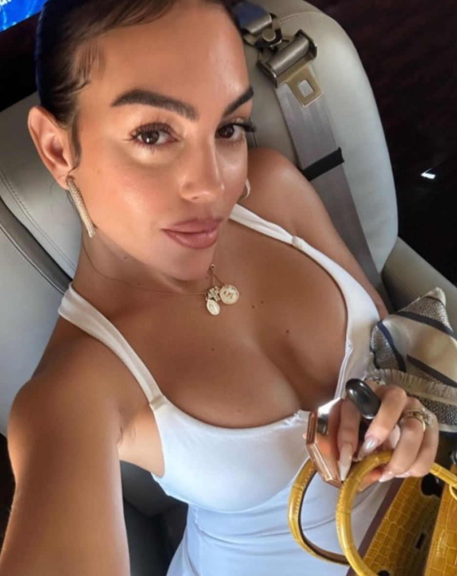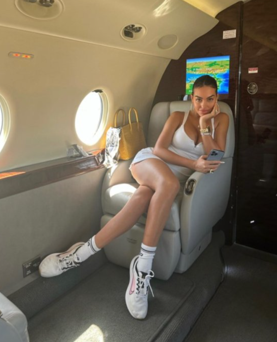 Umukunzi wa Cristiano Ronaldo witwa Georgina Rodriguez yasangije abakunzi be amafoto yicaye imbere mu ndege yihariye yambaye imyenda migufi yera.