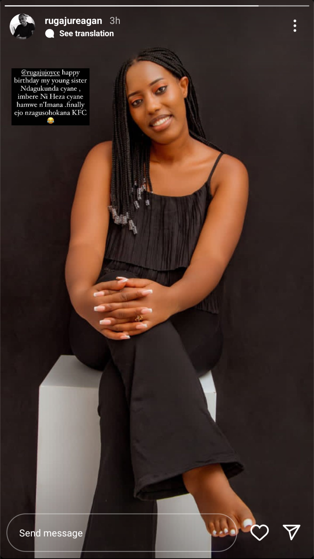 Yagize ati:”Isabukuru nziza yamavuko mushiki wange muto ndagukunda cyane, imbere ni heza cyane hamwe n’Imana” anamwizeza ko ejo azamusohokana KFC.