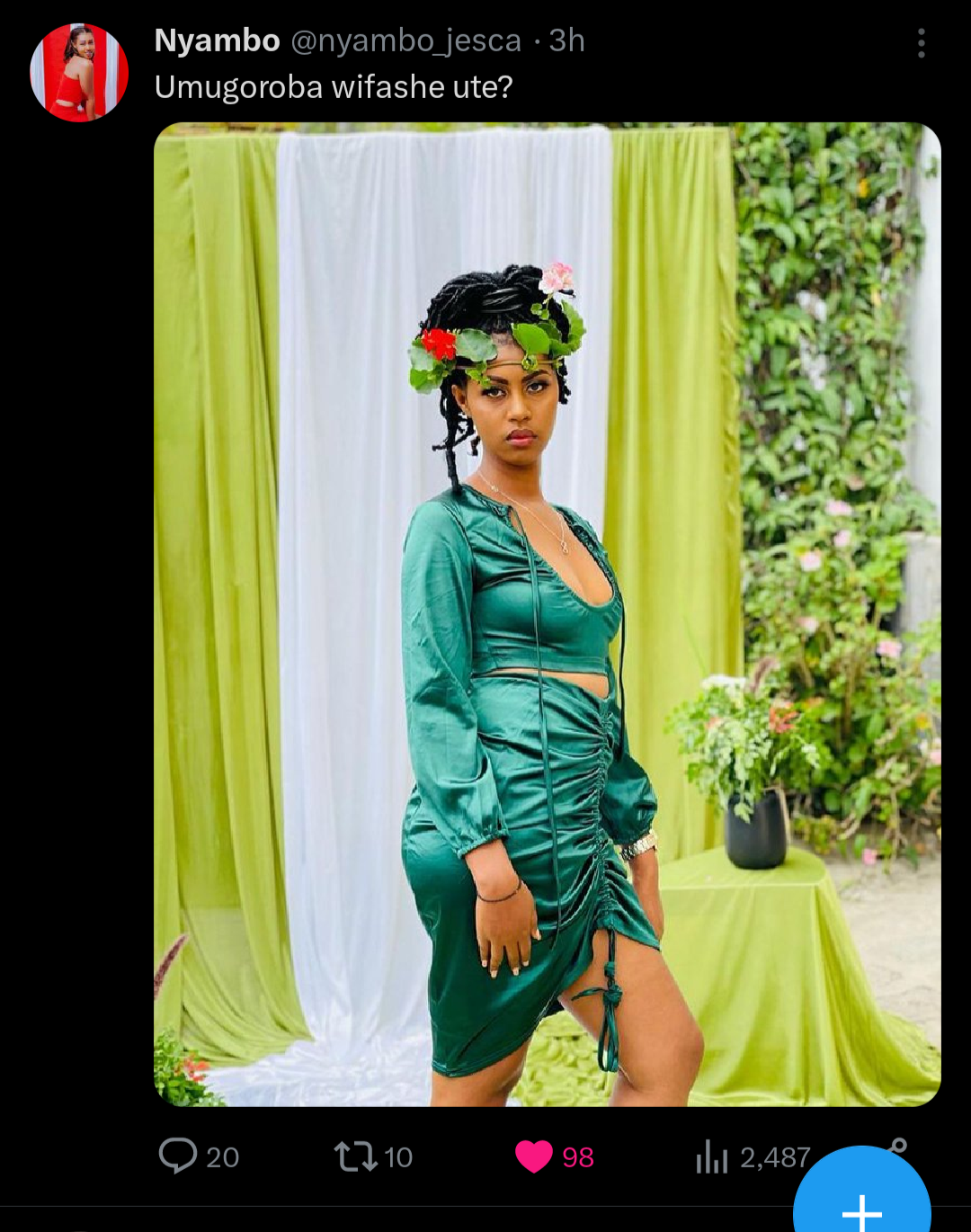 Abinyujije kurukuta rwe rwa X yashyizeho ifoto yambaye ikanzu igaragaza itako rye rikurura abarebyi bituma batangira kumugira ikiganiro.