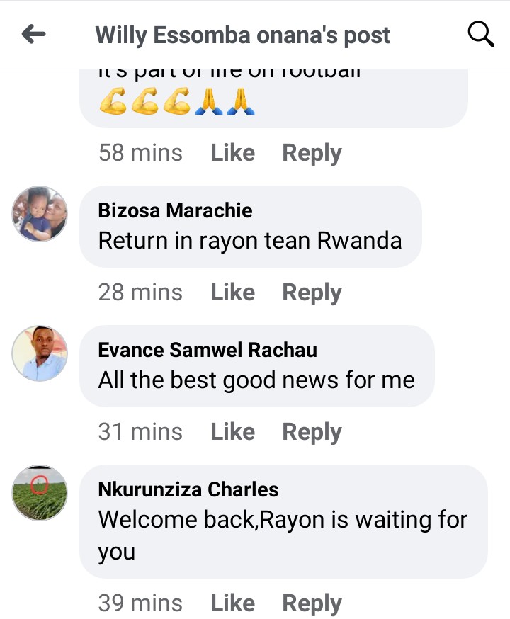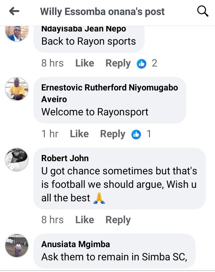 “Welcome to Rayon Sports” Amagambo Leander Willy Essombe Onana yabwiye ubuyobozi bwa Simba SC, yatumwe abafana ba Rayon Sports batangira kumwandikira bamuha ikaze muri Murera