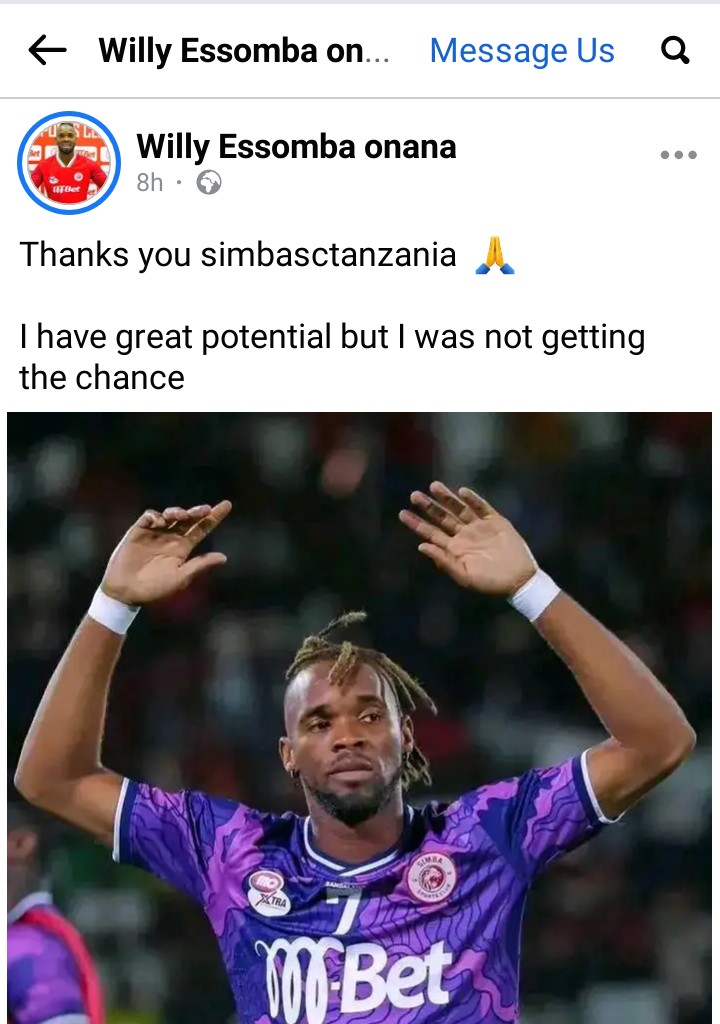 Abinyujije ku rukuta rwe rwa Facebook, Essombe Onana yatangaje amagambo agira ati “Mwarakoze cyane Simba sc Tanzania, Mfite ubushobozi bukomeye ariko sinahawe amahirwe.”