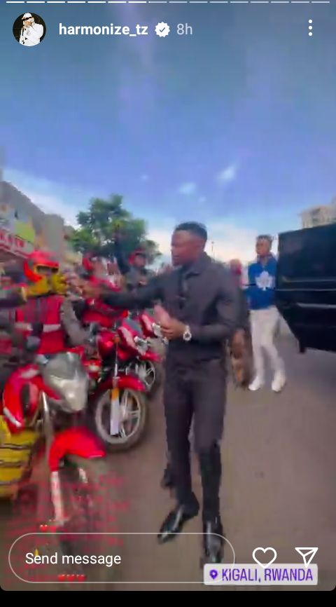 Harmonize wageze i Kigali mu rukerera rwo ku cyumweru akomeje kuryoherwa n’ubuzima bwa Kigali. Ubwo yatemberaga mu mujyi wa Kigali yageze ahitwa Downtown na we asohoka mu modoka yari arimo ubundi yihera abantu ku note za 5000 ahereye ku bamotari bari bari aho hafi ubundi akurikizaho n’abandi bantu ibi bigaragara mu mashusho yanyujije ku rukuta rwe rwa Instagram akurikirwaho n’abarenga miliyoni 9.