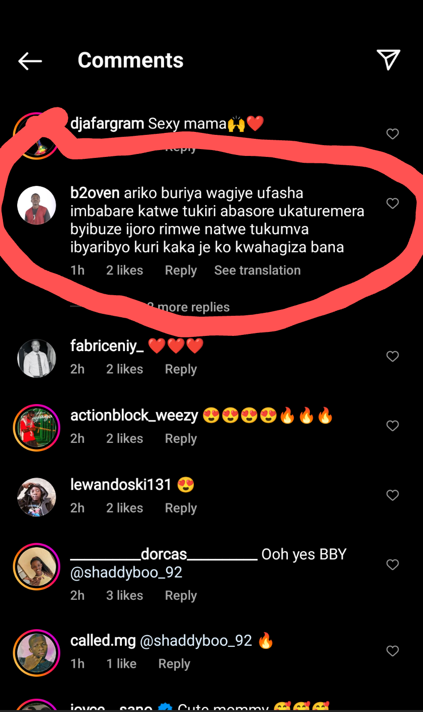 Umunyamideli Mbabazi Shadia wamamaye cyane ku izina rya Shaddy Boo yifashishije imbuga nkoranyambaga ze yasangije abakunzi be amafoto agaragaza ubwiza bwe burangaza benshi maze umusore witwa “b2oven” kuri Instagram amusaba kujya afasha abasore bakiri bato kumuraza byibuze ijoro rimwe.