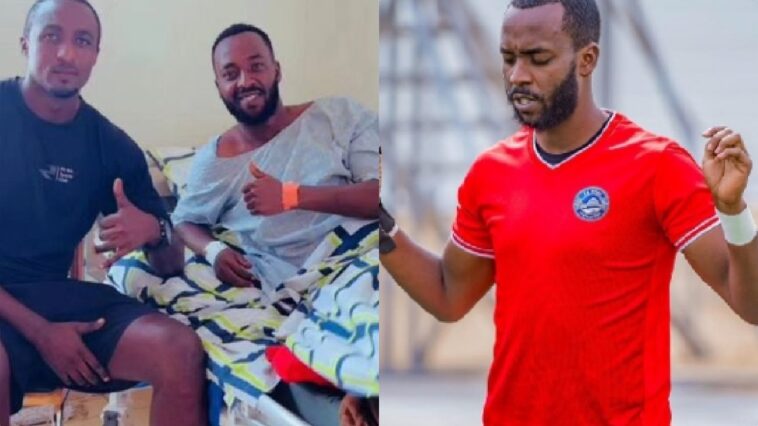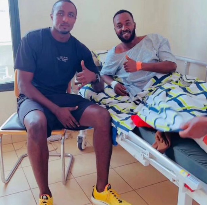 Yagaragaye aseka gusa uburibwe ari bwose! Rutahizamu w’ikipe y’igihugu Amavubi, yagiye kuba hafi ya Kimenyi Yves wavunitse bikomeye akaba ari mu bitaro i Kigali – IFOTO