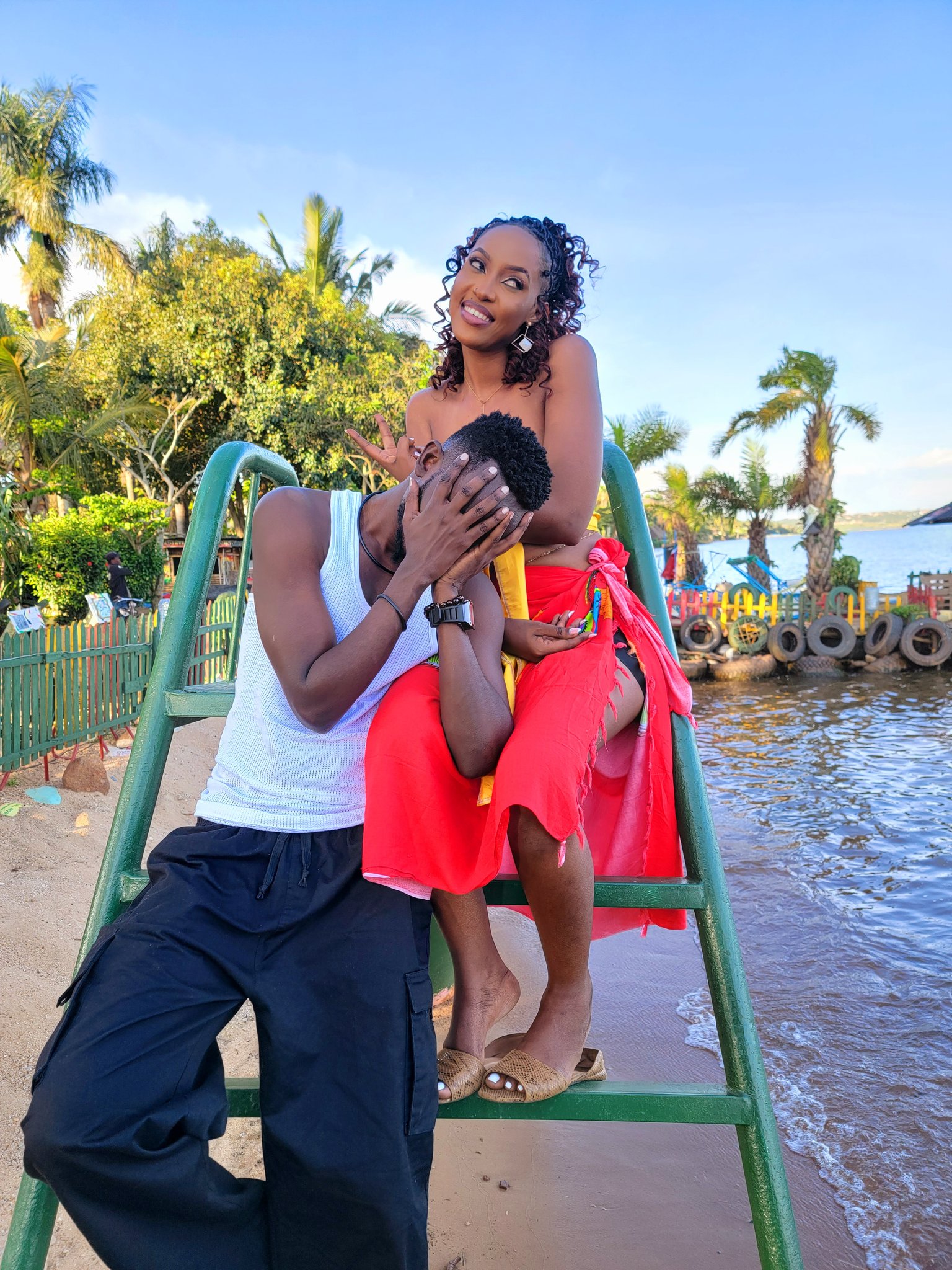 Yago Pon Dat yaganjijwe n’amarangamutima yerekana inkumi isigaye yaramwigaruriye kugeza nubwo basigaye bamarana weekend ku mazi.