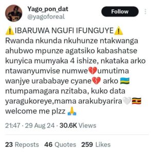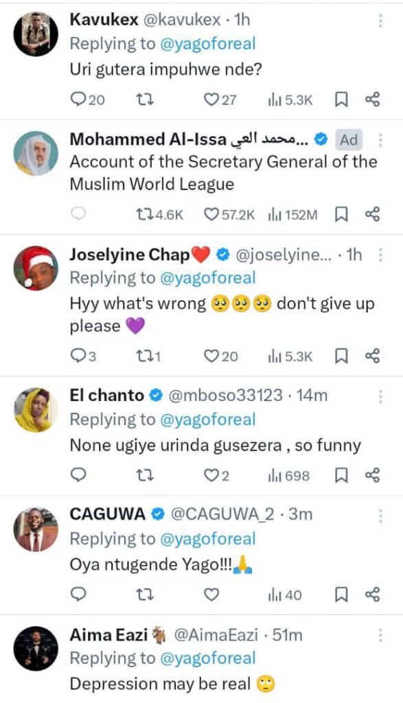 Ubutumwa bwa bakunzi ba Yago bakoresha x yahoze Ari Twitter