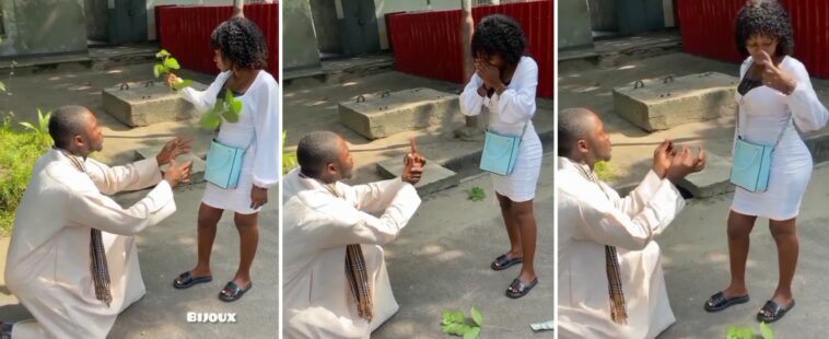 Mu mashusho yagaragaye ku rubuga rwa Instagram yagaragaje umusore wari watereye ivi umukobwa amuha maze impano y’ururabo umukobwa arajugunya arongera amuha amafaranga arangije nayo arayajugunya maze umusore akuramo indi mpano karundura umukobwa atangiye gusamara ahita amuha faka(fuck).