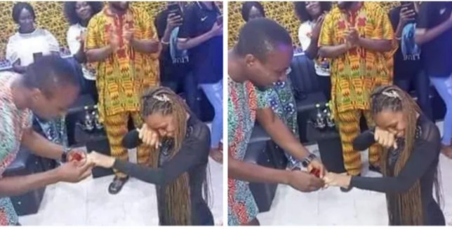 Umugabo ukomoka muri Leta ya Bayelsa, witwa ‘Camrade Ineintiemo Michael Suotongha’ yasabye umukunzi we ‘Inatimi Joy’ ko yamwambika impeta. Mu gihe uyu musore yari agiye gupfukama ngo ayimwambike uyu mukobwa yahise amutanga hasi apfukama imbere ye yemera kumubera umugore.
