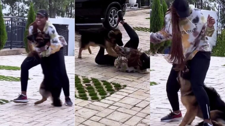 Yamugiye hejuru avuza induru! Umuherwekazi Kate Bashabe wakinaga n’imbwa ye yamugiye hejuru aratabaza – VIDEWO