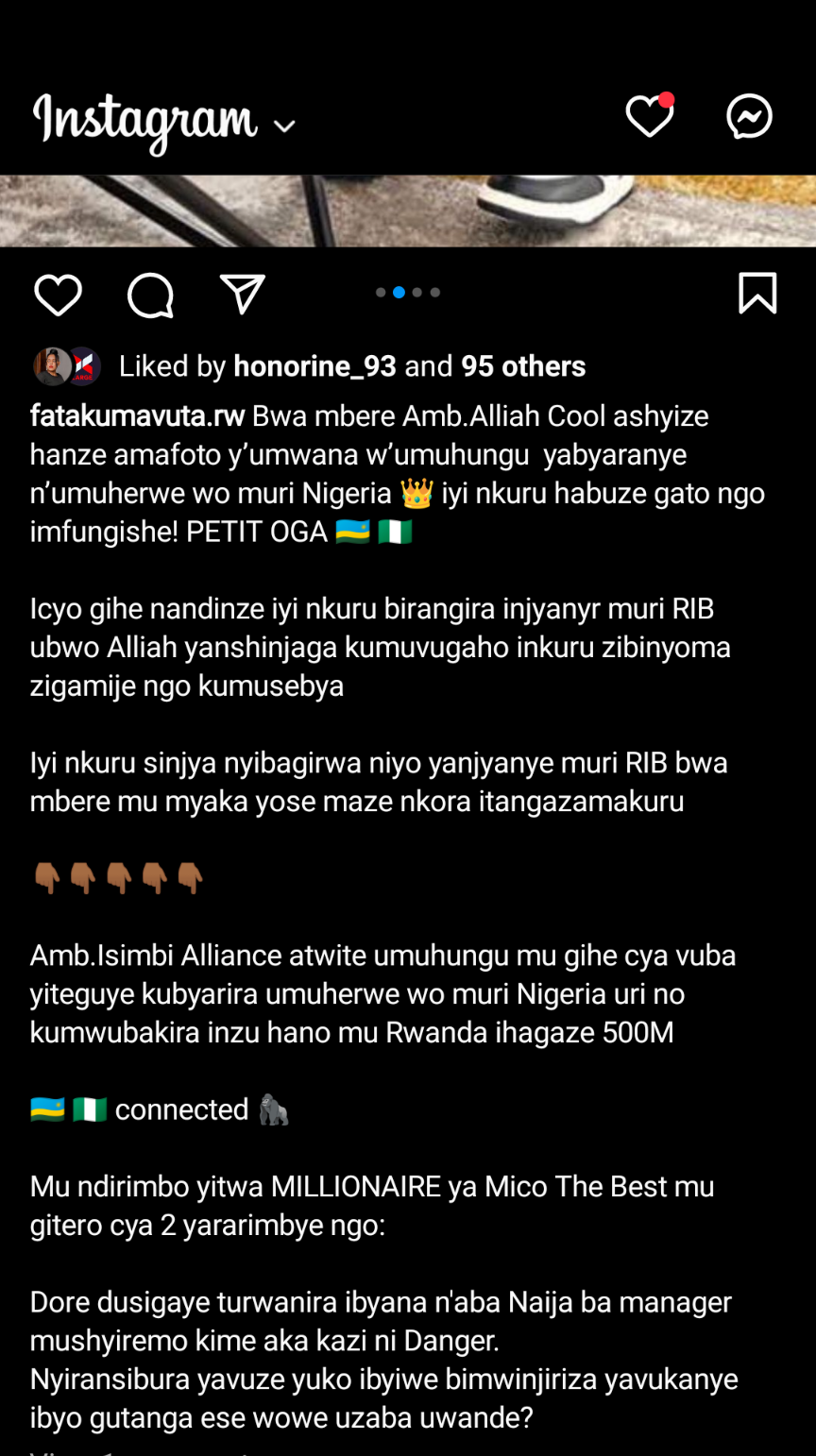 Umunyamakuru, umusesenguzi ndetse akaba n’umuvugizi w’ikipe ya Gorilla FC yifashishije imbuga nkoranyambaga ze yatangaje byinshi k’umuherwekazi Isimbi Alliance wamamaye cyane ku izina rya Alliah Cool aho yavuze ku mwana we w’imfura ndetse n’umugabo babyaranye uwo mwana avuga ko yari atumye afungwa.
