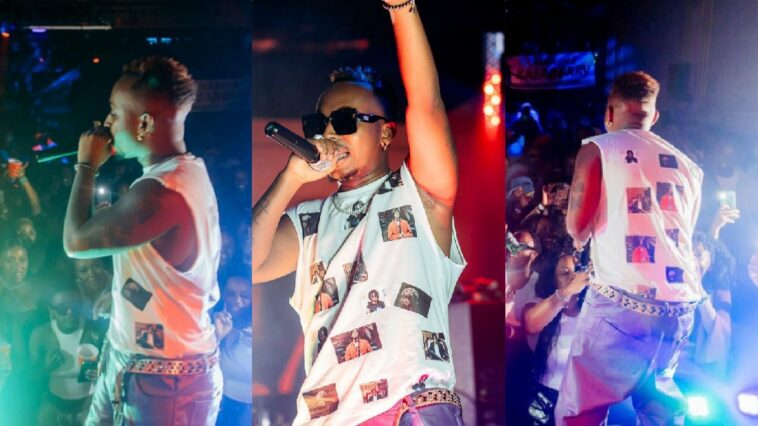 Kenny Sol yavuze ko yahisemo guserukana umwenda uriho amafoto ya Young CK uherutse kwitaba Imana mu rwego rwo kumuha icyubahiro cyane ko yari umuhanzi mugenzi we.