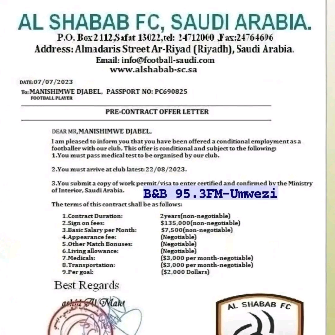 Manishimwe Djabel ntacyerekeje muri Arabie Saoudite.