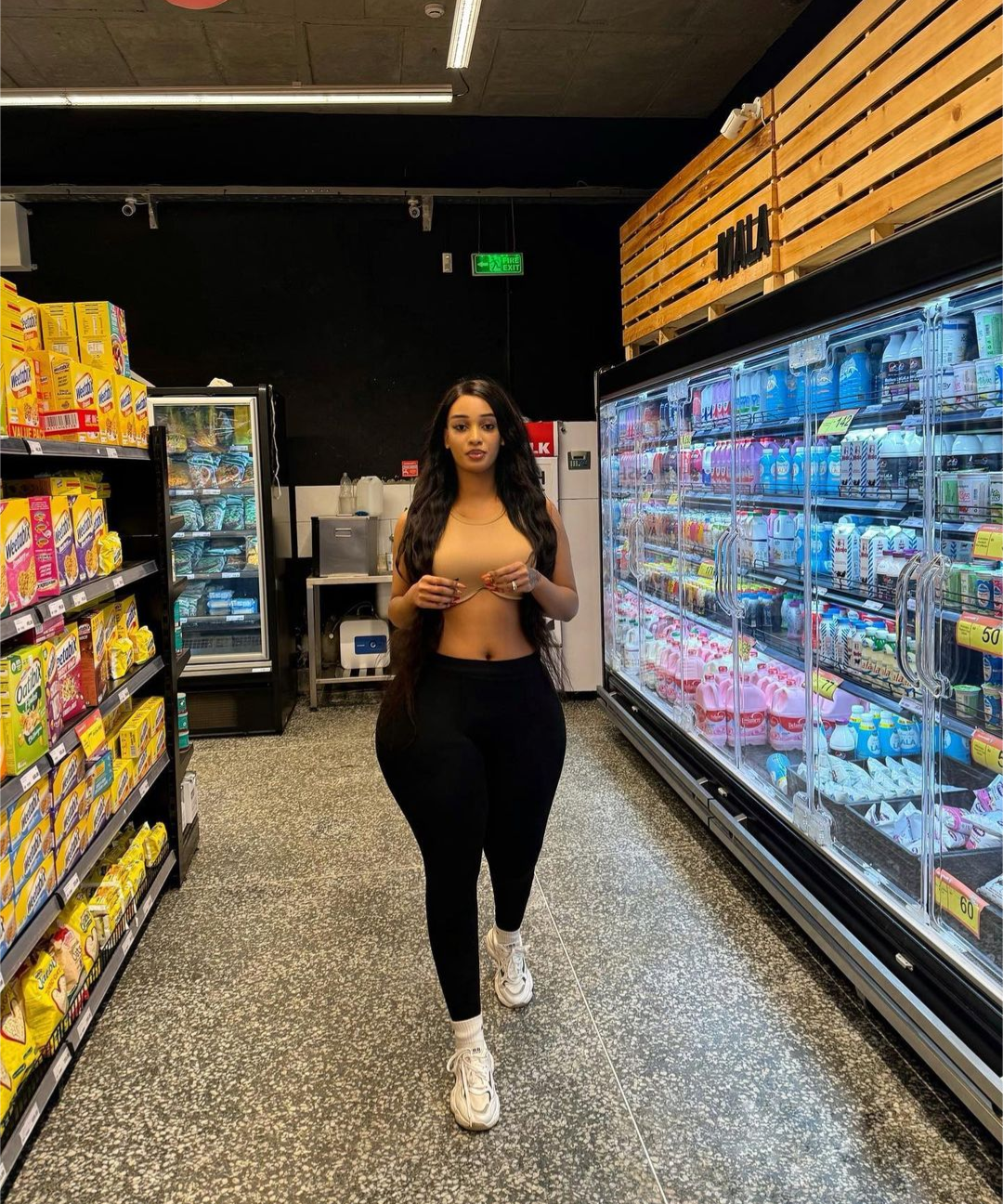 Abinyujije kurukuta rwe rwa Instagram yashyizeho amafoto yambaye ipanaro imufashe cyane y’umukara ndetse n’undi mwambaro ufashe ku mabere gusa kuburyo umukondo we wose waruri hanze.
