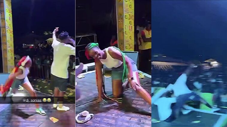 Umukobwa umenyerewe mu kuvanga imizuki hano mu Rwanda, Dj Sonia yaguye ku rubyiniro ubwo yabyinaga, ndetse n’umuhanzi Bull Dog nawe yaguye ku rurubyiniro ubwo yaririmbaga.