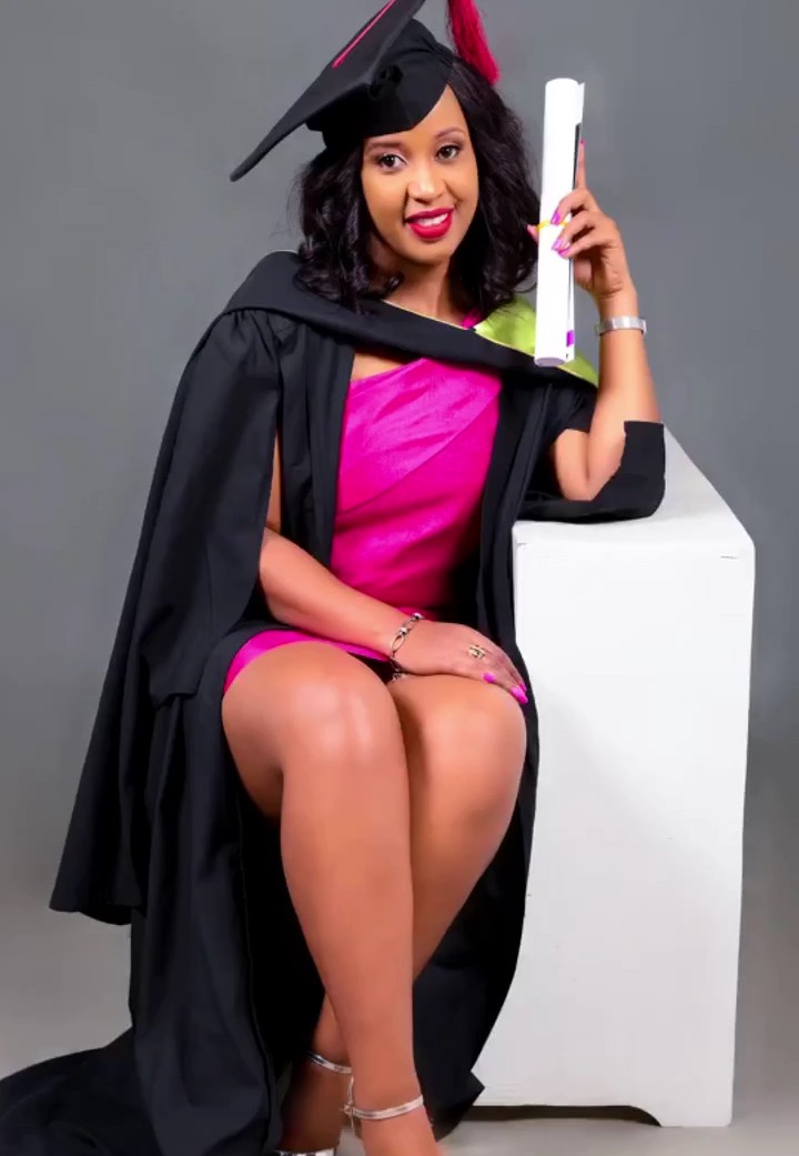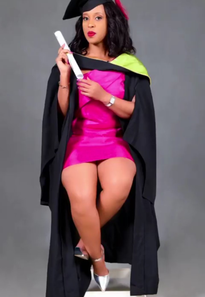 Yari yabyambariye! Soleil wo muri Bamenya yasoje amasomo ye yambaye ikanzu igaragaza ikibero cye ndetse n’ubwiza bubereye ijisho (AMAFOTO)