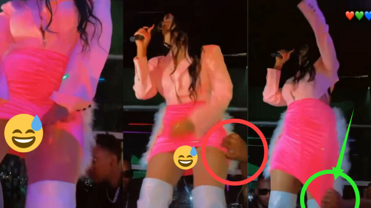 Ku mbuga nkoranyambaga Marina akomeje kuba igitaramo nyuma yuko agiye ku rubyiniro yambaye akajipo kagufi kereka umwenda w’imbere, bigatuma umufana amumanurira ijipo.