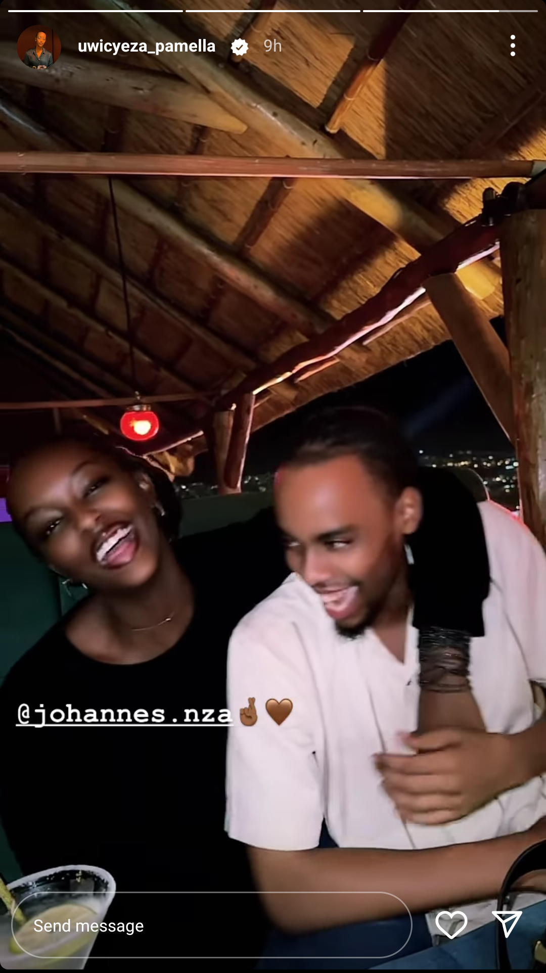 Abinyujije kurukuta rwe rwa Instagram ahashirwa ubutumwa bumara amasaha 24 yashyizeho amashusho arikumwe n’undi musore w’ibigango bishimanye Pamela amufashe kurutugu bakanyuza bagaseka.