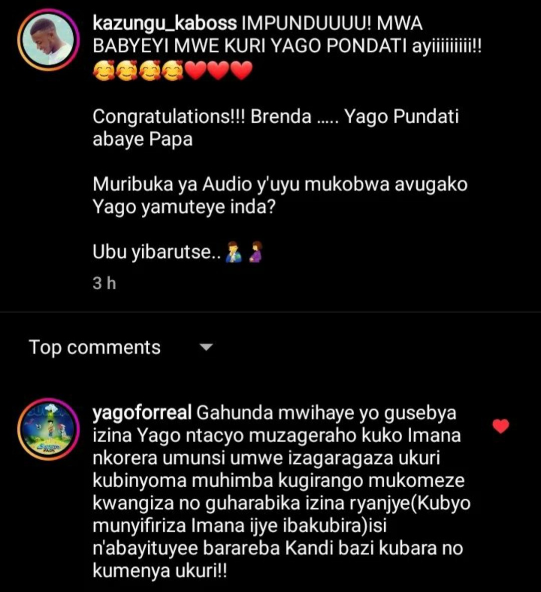 Yago Pondat yihakanye iby’umwana w’umukobwa Brenda yibarutse mu minsi yashize.