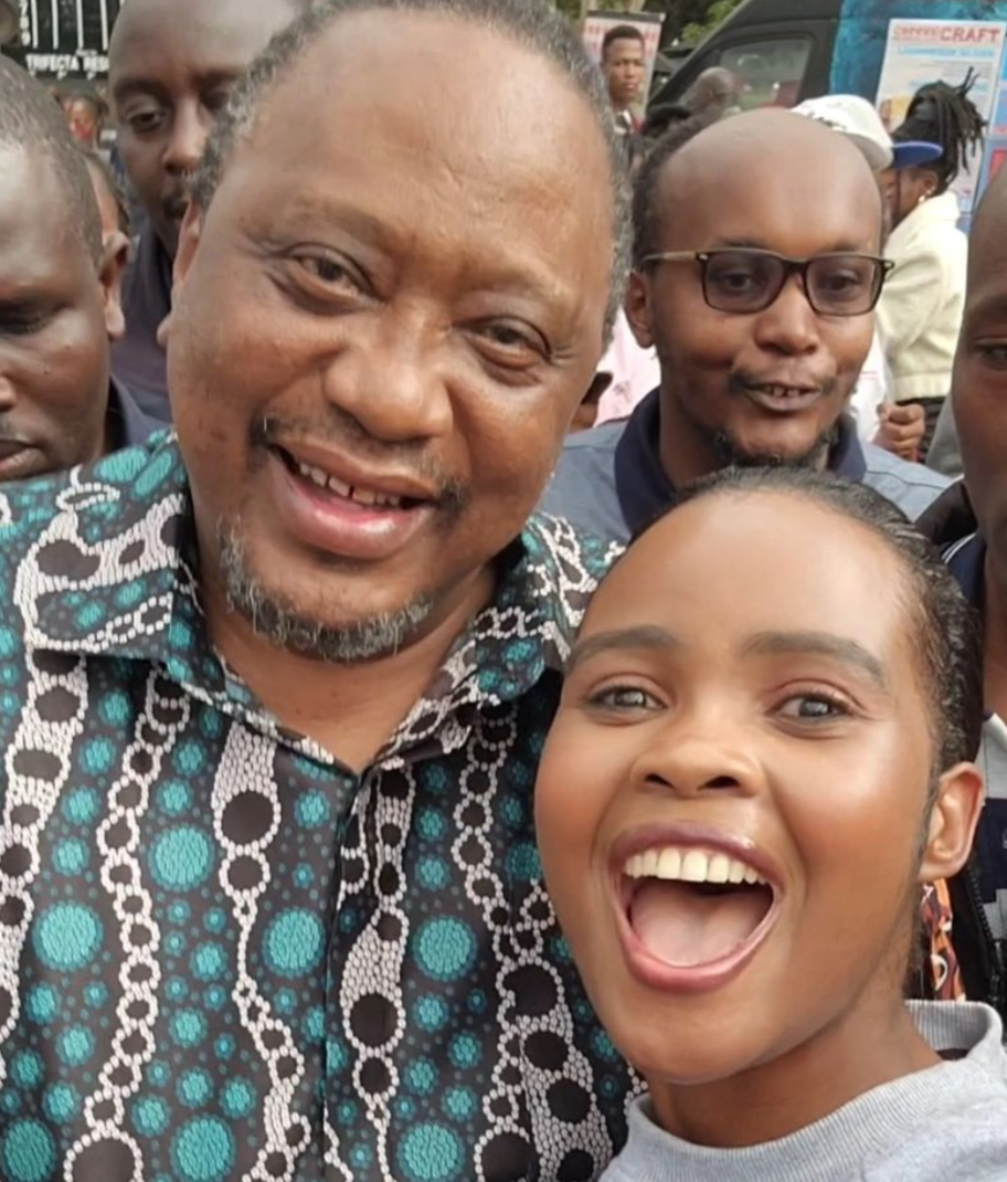 Umuhanzikazi hano mu Rwanda amaze igihe adasohora indirimbo Sunny  yishimiye gufata ifoto na Uhuru Kenyatta wahoze ari Perezida wa Kenya.