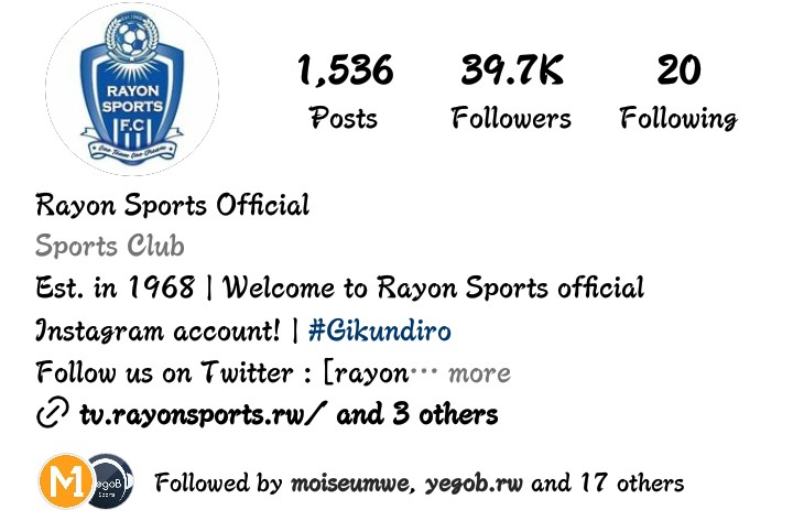 Yewe Aba rayon ntabufana bwanyu, uziko mutagwa no mu ntege za Apr Fc ! Dore amakipe 7 akurikirwa kurusha ayandi mu Rwanda ku rubuga rwa Instagram