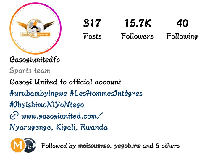 5. Gasogi United ikurikirwa n’abantu ibihumbi 15.