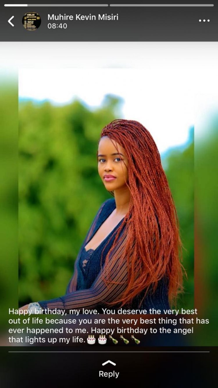 Uyu mukinnyi yifashishije amafoto n’amashusho amara umunsi umwe, Muhire Kevin yatatse umukunzi we agira ati:”Isabukuru nziza rukundo rwanjye .Ni wowe ukwiye ibyiza mu buzima bwanjye kuko ni wowe muntu w’agaciro mfite.Isabukuru nziza Malayika umurikira ubuzima mbwanjye.Ntacyo naba ndi cyo mbaye ntagufite.”