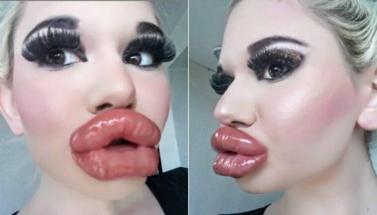 Yifuza kuba igipupe, umugore wibagishije iminwa asigaye ateye ubwoba (amafoto)