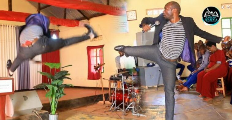 Yisekuye hasi bagira ngo arasandaye ariko yahagaritse bwangu! Umugabo w’umurokore yabyinnye imbere y’abakirisitu mu buryo budasanzwe kugeza hari n’abari kwibaza imbaraga zamukoreshaga