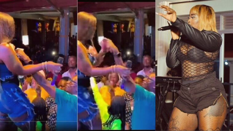 Yitwaje ko agiye kuyashyira mu isutiye ye! Umugabo yagerageje gukora mu mabere y’umuhanzika wari ku rubyiniro yitwaje amafaranga (Videwo)