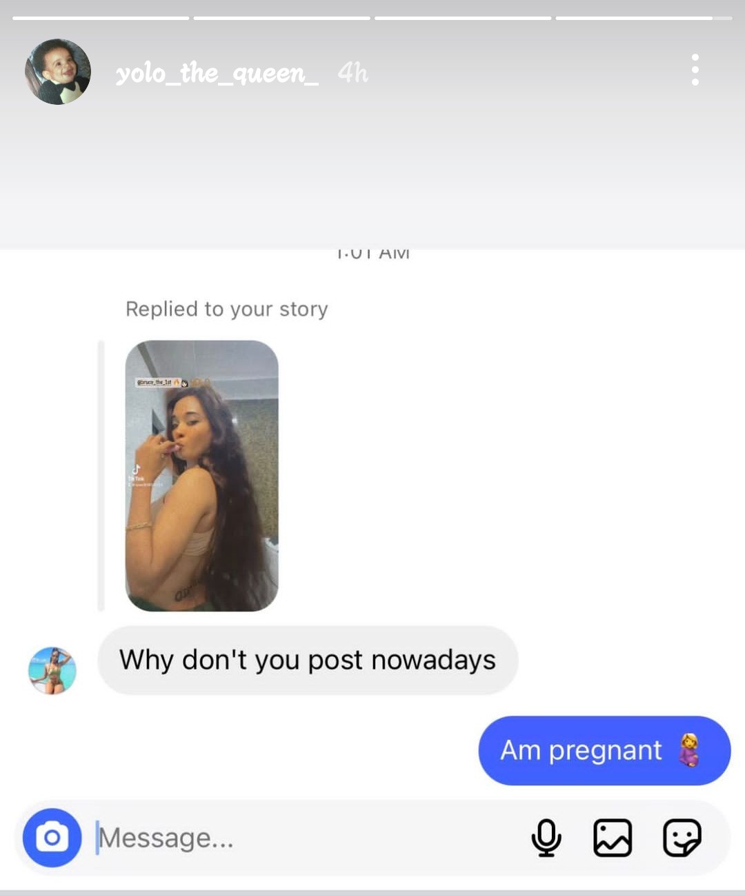 Abinyujije ku rukuta rwe rwa Instagram ahajya sitori, umufana we yamubajije kuki muri iyi minsi atagishyiraho amafoto ye nka mbere ni uko undi na we mukumusubiza yamubwiye ko atwite.