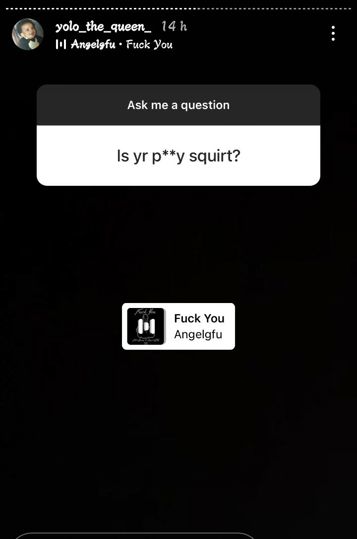 Muri abo bantu hari uwamubajije niba agira amavangingo. Gusa Yolo The Queen kuko yumva iki atari ikibazo cyo ku mubaza yahise ahitamo kumutuka. Yakoresheje indirimbo yitwa “fuck” atuka uwo muntu wamubajije gutyo.