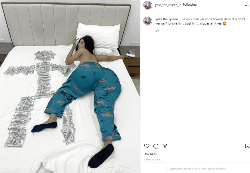 Yolo the Queen yashyize hanze iby’umukunzi we aryamye mu buriri bwuzuye amadolari (ifoto)