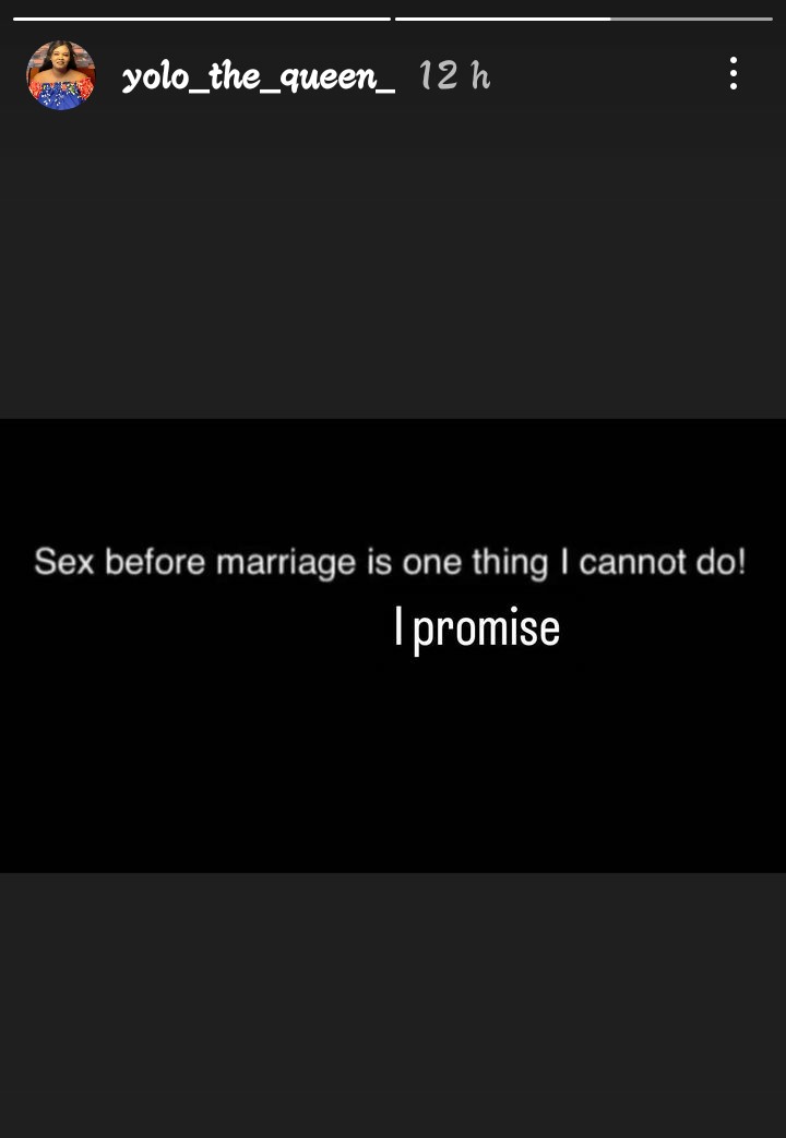Yolo abinyujije ku rukuta rwe rwa Instagram yasaga nkuri gusezeranya umuntu runaka ko ibintu byo gukora imibonano mbere y’ubukwe atabyemera kandi atabikora.