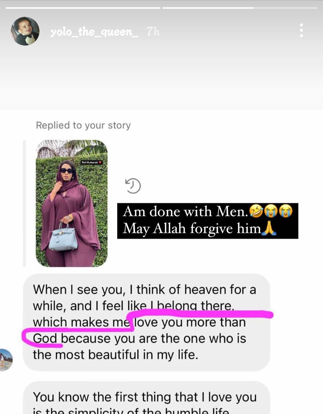 Abinyujije ku rukuta rwe rwa Instagram ahajya sitori, yasohoye ubutumwa bw’urukundo yandikiwe n’umugabo umukunda byo gupfa ni uko maze ahita avuga ko yarangizanyize n’abagabo.