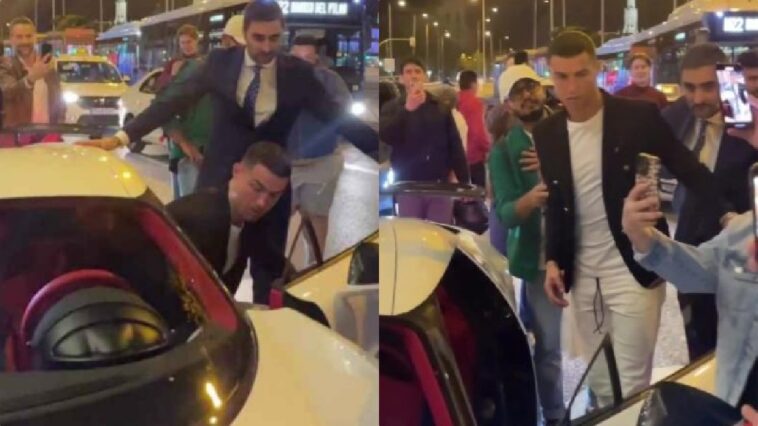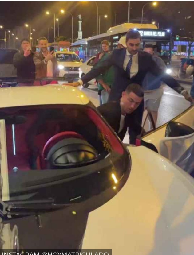 Cristiano Ronaldo ubwo yari arimo gutembera mu mujyi yahoze abamo agikinira Real Madrid,  abafana benshi bituma we n’abamucungira umutekano bava mu modoka ye ihenze ya Bugatti yaguze akayabo ka miliyoni 8.8 z’amapawundi.